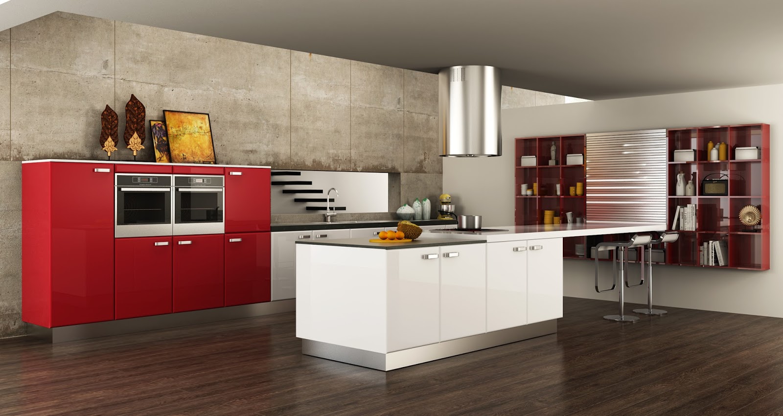 cabinets is red and white lacquer. From the picture above, we could tell that